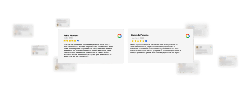 Somos a Talkers, uma escola com mais de 20 anos de história e mais de 6.000 alunos formados. Não é um curso genérico, é a adaptação online de uma metodologia comprovada e aplicada diariamente em sala de aula.